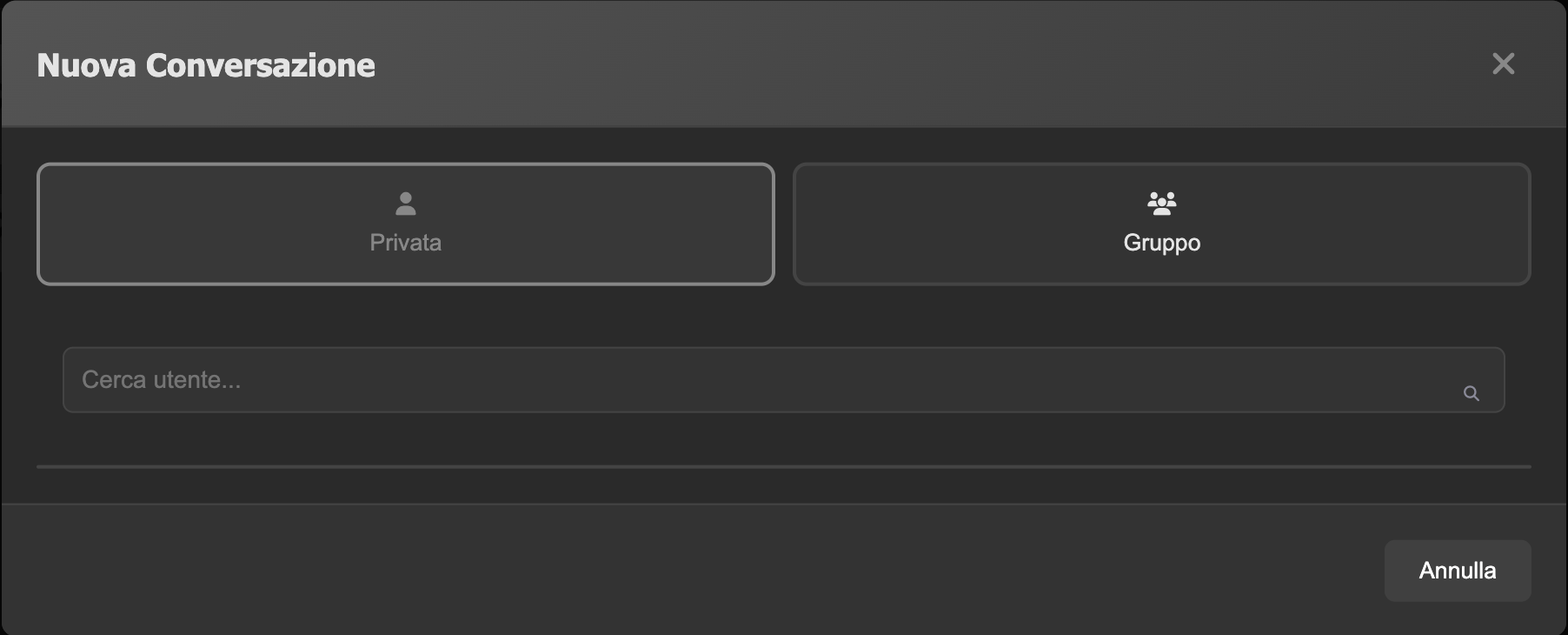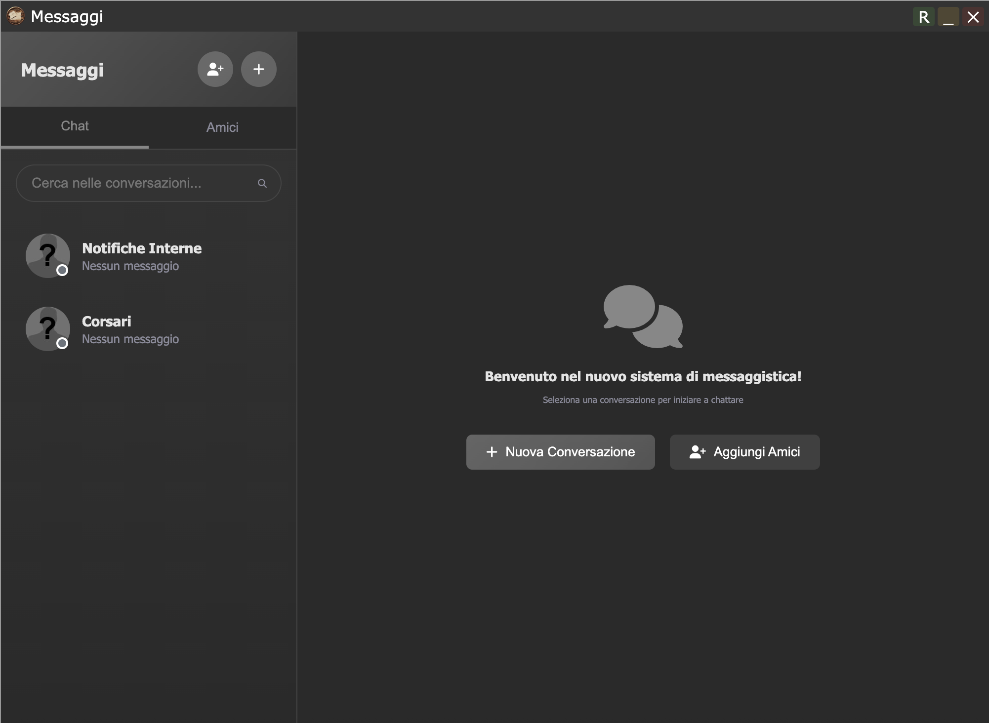 A sinistra compare l'elenco delle conversazioni. Le comunicazioni del server vengono raggruppate in due conversazioni: