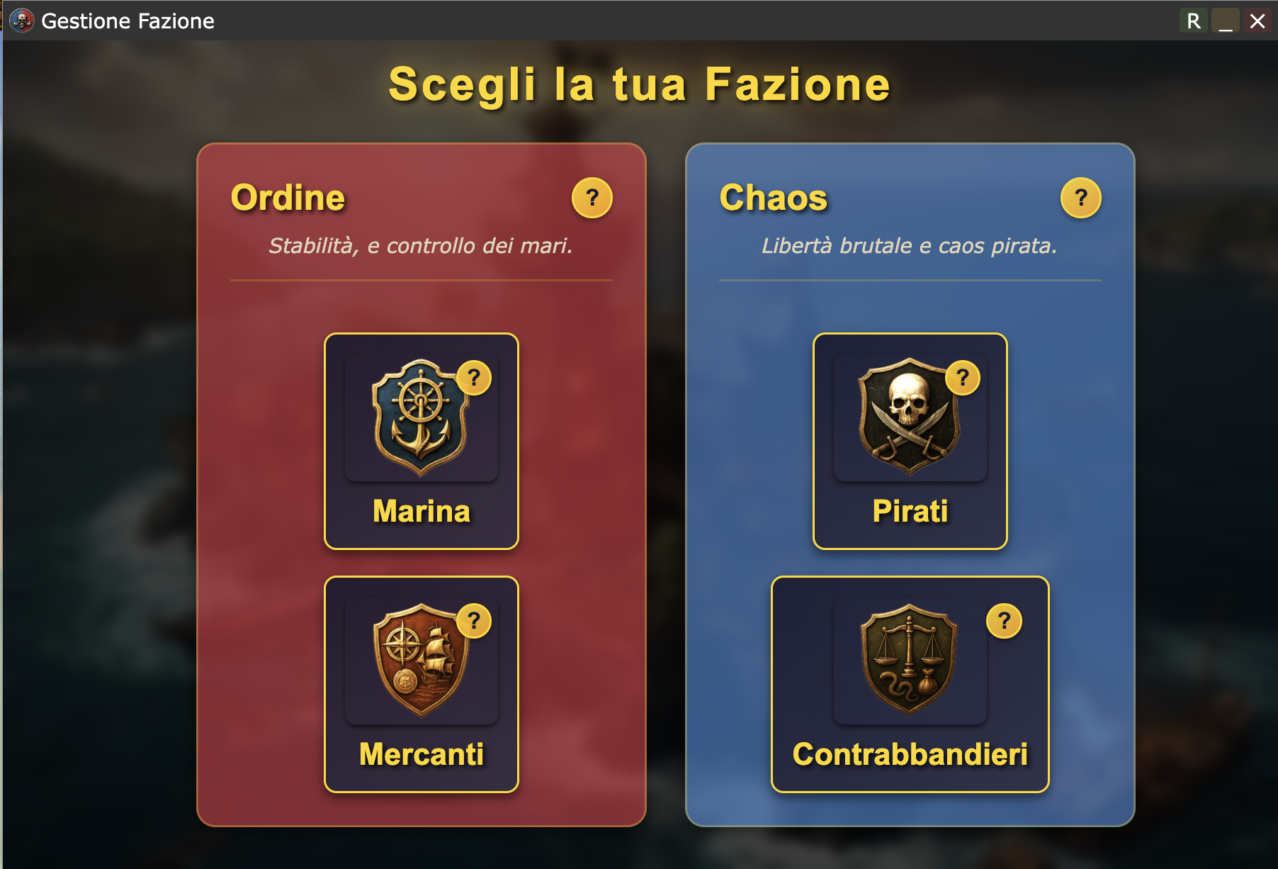 Si aprirà quindi il pannello di Gestione Fazione, attraverso il quale sarà possibile fare la propria scelta.