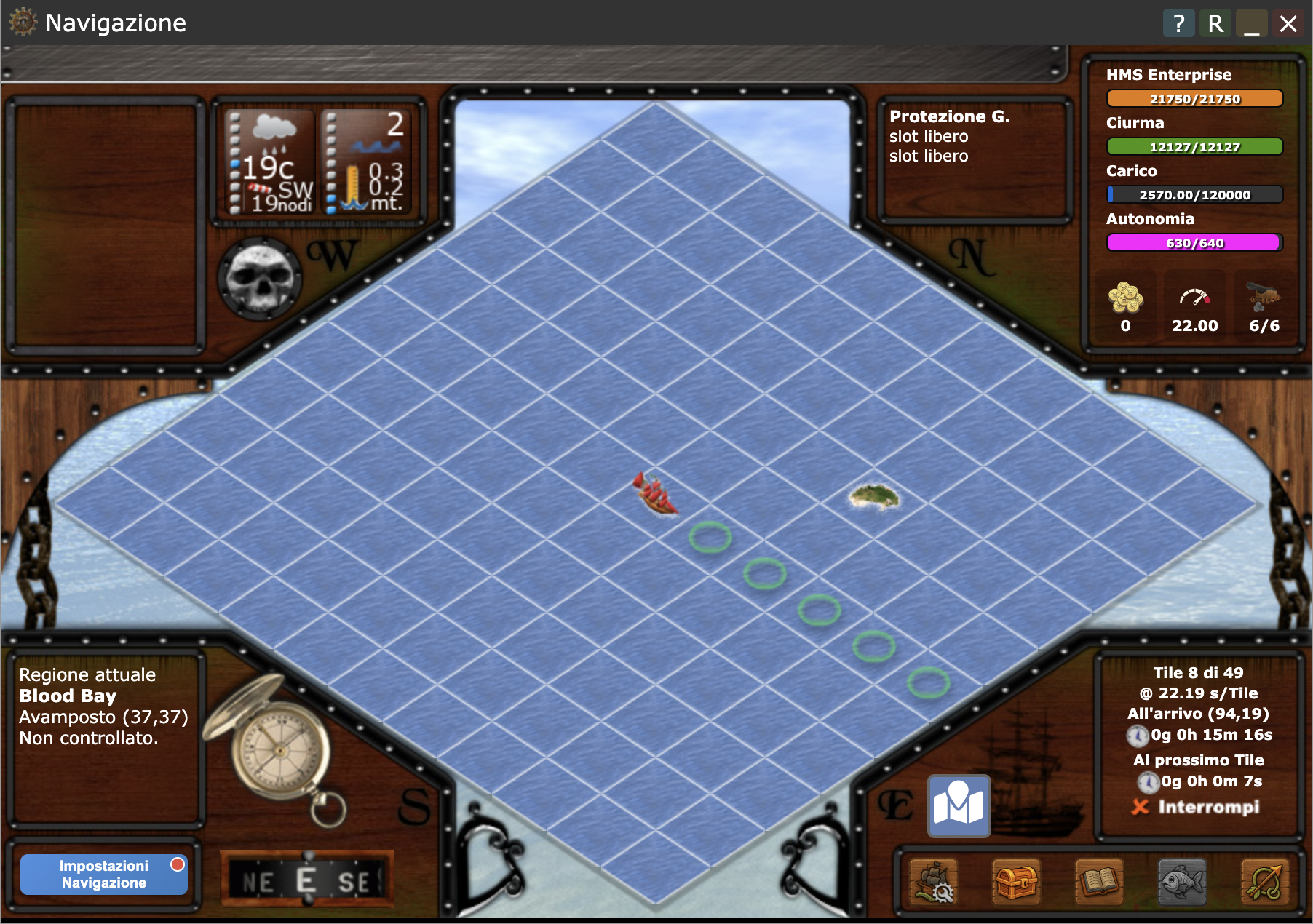 Muoversi "a piccoli passi" selezionando via via uno dei tile più vicini alla tua flotta si chiama in gergo di Pirates War "navigazione tile-to-tile" (abbreviata spesso in t2t) è la tecnica più utilizzata durante gli inseguimenti per una serie di motivi. Uno su tutti ti permette di reagire rapidamente a cambiamenti di direzione del tuo avversario.